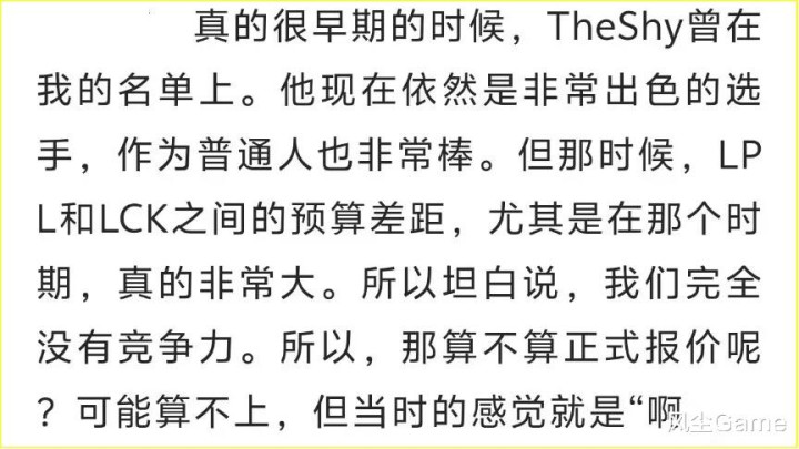 除此除外GEN的CEO还透露:在很早之前,GEN念念过签约TheShy,但阿谁本事,LPL和LCK的预算差距很大,GEN富余莫得竞争力,是以临了莫得签成,他说的应该是IG,S8夺冠之后的事情吧,阿谁本事韩援的身价,如实是很夸张,况兼LPL正处于旺盛时间,俱乐部王人很舍得用钱的。