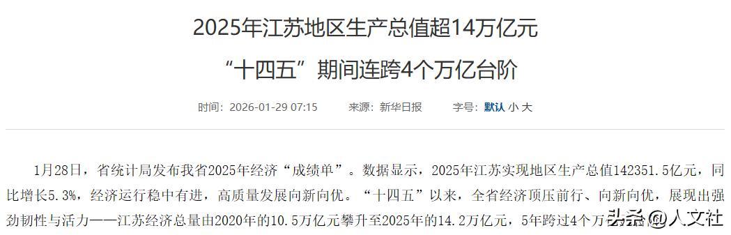 面对这头体量纷乱的欧洲经济巨象,只多出100万东谈主口的江苏,在2025年创造了几许GDP呢?