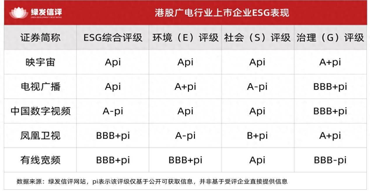 绿发信评主动评级终结知道,港股广电行业ESG评级进展平衡。其中,映天地与电视播送以Api评级领跑港股全行业;中国数字视频获A-pi评级;凤凰卫视及有线宽频均取得BBB+pi评级。行业举座评级在BBB+pi及以上,突显港股广电企业在ESG限制的塌实布局与邃密实验。