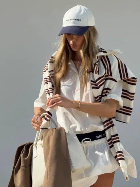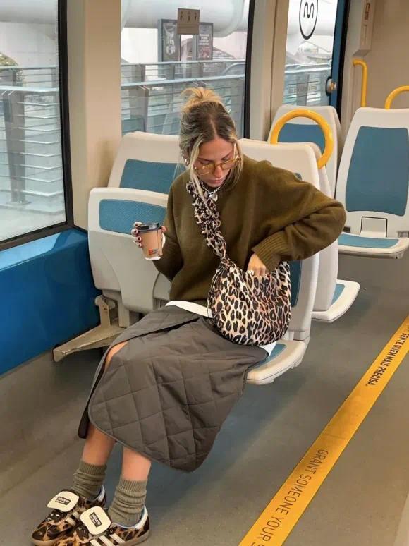 若是说亮色是能量的外放,那么地面色,则更像是一种春日里踏实的呼吸。 不民俗高敷裕色时,不错从棕色系启动。Miu Miu频年的抒发,即是一个明晰的参照。棕色、驼色在不同单品中的反复出现,构建出一种温和却继续的女性气质。这些颜料,在春日户外尤其耐看。